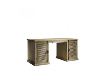 Ставни с угловыми жалюзи – архитектурная деталь, впервые использованная в Древней Греции, нашли новое место в доме. Благодаря такой конструкции створок письменный стол хорошо вентилируется. Внутри по одной полке с каждой стороны и выдвижной ящик посередине. Дверцы украшают замки во всю длину створок, изготовленные из латуни.Изготовлен из массива дуба 708.