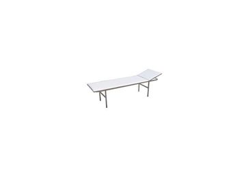 Каркас выполнен из профильной трубы и окрашен порошковой краской. Верхняя часть изготовлена из ДСП, поролона и обита винилискожей, которая легко моется. Возможно изготовление из цветной искусственной кожи. Угол наклона подголовника регулируется при помощи механизма "растомат" и меняется от 0 до 45 град относительно горизонтальной оси. None