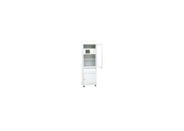 Нижнее отделение оборудовано ключевым замком и выдвижным ящиком на телескопических направляющих. Верхнее отделение со стеклянной створкой в алюминиевой раме, одна металлическая полка, трейзер.Шкаф на регулируемых опорах. None