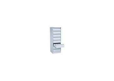 Предназначен для хранения документов формата А4. Восемь выдвижных ящиков. Два центральных замка закрывают все ящики. Телескопические направляющие позволяют выдвинуть ящик полностью. None