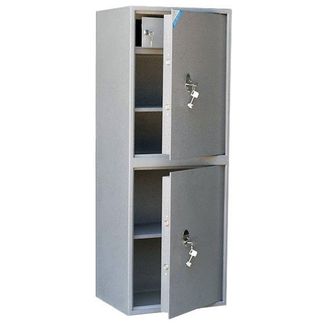 Офисный сейф с возможностью раздельного доступа в отделения. Двухсекционный бухгалтерский сейф с ключевыми замками.