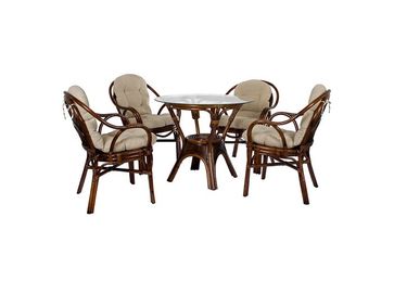 Комплект обеденный из ротанга Luxor Артикул: 004.037 Комплект обеденный из ротанга Luxor с подушками на стульях. Стол с круглой стеклянной столешницей. None Есть доставка.