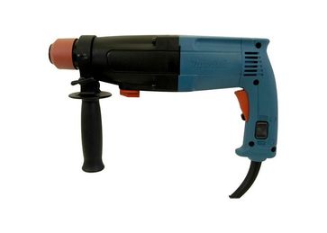 Надежный в эксплуатации трехрежимный перфоратор Makita HR2400 для работы по дереву, металлу, бетону, пластику и кирпичу. Инструмент может использоваться как дрель, ударная дрель и отбойный молоток. Переключение режимов работы выполняется при помощи рукоятки внизу корпуса, которую легко можно достать свободной рукой. Кнопка на нижней части курка отвечает за блокировку включения перфоратора. Этот электроинструмент Makita оснащен патроном SDS-Plus, что способствует быстрой замене оснастки. Специальная расцепная муфта предотвращает рывок при заклинивании бура и предохраняет механизм от износа. Двойная защитная изоляция и система пылеудаления предохраняют инструмент от поломки при работе в агрессивных средах. Благодаря мощному, 750-ваттному двигателю и хорошей частоте ударов – до 4200 в минуту, модель имеет отличную производительность. Электронная регулировка скорости вращения управляется изменением усилия на пусковой кнопке. Максимальная частота оборотов на холостом ходу – 1200 в минуту. Режим реверса включается нажатием клавиши на левой стороне рукоятки. Это немного неудобно, но зато возможность случайного включения практически отсутствует. Реверс помогает извлечь заклинивший бур, и дает возможность использовать перфоратор в качестве шуруповерта, применяя соответствующую оснастку.Вес инструмента - 2,4 кг. Перфоратор Макита HR 2400 отлично сбалансирован и удобно лежит в руке. Резиновые накладки на рукоятки препятствуют скольжению ладони. Дополнительная боковая рукоятка (в комплекте) помогает удерживать инструмент при продолжительной работе. Энергия удара перфоратора равняется 1,5 Дж. Максимальный диаметр сверления в дереве равняется 24 мм, в металле – 13 мм, а в бетоне – 24 мм.В комплект поставки перфоратора входит съемная боковая рукоятка, ограничитель глубины сверления и фирменный кейс для переноски. None Есть доставка. Доставка: 300.0RUR