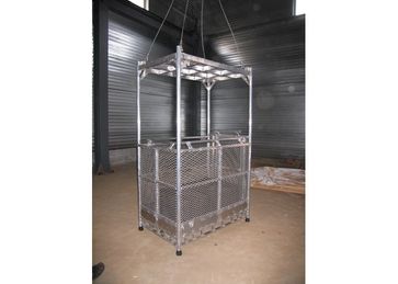 Основные размеры и параметры: – ЛПА-4/1 — Норма грузоподъемности люльки не более 500 кг., вместимость=4 человека, масса-110 кг., длина- 1850 мм, ширина- 1250 мм., высота- 2350 мм. Температурный режим эксплуатации -30º…+55ºС.Люлька оборудована закрывающейся калиткой, демпфирующими башмаками, проушинами. Могут поставляться с комплектом стропов / без стропов.