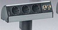 Модульный блок электрических розеток Evoline Dock 930.06.623. Три электрические розетки + 2 разъема RJ 45 для подключения компьютера и телефона, кабель 3 м. Кабель 3м со штепсельной вилкой, опора 2 шт. Цвет серебристый. Артикул 930.06.623. Страна производитель Германия. None