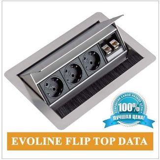 Встраиваемая розетка Evoline FlipTop Data 934.20.002 для установки в один уровень со столешницей . Три электрические розетки + два разъема RJ-45, кабель 2,5 м. Штепсельная вилка отдельно от кабеля. Цвет серебристый. Артикул 934.20.002. Страна производитель Германия. None