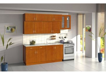 Кухонный гарнитур с фасадами из МДФ, тонированными витринами, стильными ручками и столами на регулируемых ножках. Модель разработана американскими дизайнерами и адаптирована под российский рынок. Столешница, мойка и сушка приобретаются дополнительно. При заказе от 50000 руб. требуется 50% предоплата Есть доставка.