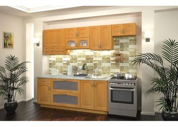 Кухонный гарнитур с фасадами из МДФ, тонированными витринами, стильными ручками и столами на регулируемых ножках. Модель разработана американскими дизайнерами и адаптирована под российский рынок. Выполняестя в цвете: ольха Столешница, мойка и сушка приобретаются дополнительно. При заказе от 50000 руб. требуется 50% предоплата Есть доставка.
