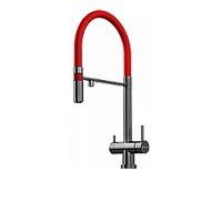 Японский смеситель для кухни, цвет вороненая сталь, красный гибкий шланг. Подключение фильтра для воды Наличные, б/н расчет, банковские карты