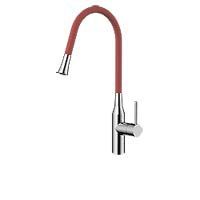 Японский смеситель для кухни в ультрасовременном стиле однорычажный. Цветной гибкий поворотный шланг. Материал латунь, цвет нержавеющая сталь, шланг красный Наличные, б/н расчет, банковские карты