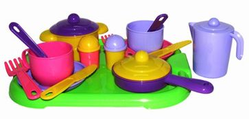 - Полесье Набор детской посуды "Хозяюшка" с подносом на 2 персоны по выгодной цене 430 р. руб.;