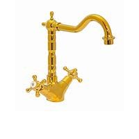 Смеситель для кухни двухвентильный. Стиль ретро. Механизм керамическая кран-букса. Материал латунь, цвет золото. Поворотный излив да, 360°. Выдвижной излив нет. Подключение фильтра нет. Форма смесителя круглая. Высота смесителя 230 мм, высота излива 175 мм, длина излива 190 мм. Производитель Seaman. Страна производства Россия. Гарантия 3 года. Наличные, б/н расчет, банковские карты