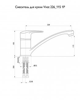 Смеситель для кухни 226/115 гэлакси Характеристики: Смеситель кухонный Vivat 226/115 1Р однорычажный с низким поворотным изливом. Стандартное отверстие под смеситель. диаметр отверстия для установки, мм: 35 (керамический картридж) Материал: искусственный камень Размеры (ДхВ), мм: 226х115 Комплектация: Гибкая подводка 40см, крепление Цвет: гэлакси(черный) Минимальная сумма заказа 1000 рублей. Возможен самовывоз.