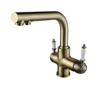 Смеситель для кухни LEMARK VILLA является оригинальной сантехникой исполненной в ретро стиле с цветом – бронзы. Разработчиком этой коллекции является Чешская фирма, которая отличается высоким качеством своей продукции. Данный смеситель предусмотрен для установки на кухне, поэтому имеет не только надежное устройство, но и уникальный дизайн, исполненный в старинном стиле. Тип смесителя – двухвентильный, отдельно под горячу и холодную воду. Монтируется на раковину в одно отверстие. У имеющегося излива изогнутая форма, его длина составляет – 209 мм. Общая высота смесителя – 281 мм. В техническую основу смесителя, включены аэраторы для водопроводной и питьевой воды. В смесителе установлен картридж из керамического материала: SEDAL - 35 мм. Для питьевой воды предусмотрен кран-букс с вмонтированными керамическими пластинками. Его угол поворота составляет порядка 90 градусов. Идущая в комплекте подводка имеет гибкий тип – ½, с длиной 60 см. В заводскую комплектацию рукоятки (металлические), переходники под последующее подключение шланга и фильтр для питьевой воды. None