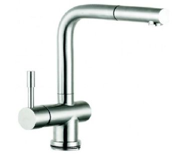 Смеситель из нержавеющей стали, с выдвижным изливом Установка на мойку/столешницу Комплектация: гибкая подводка, прокладки, система крепежа None