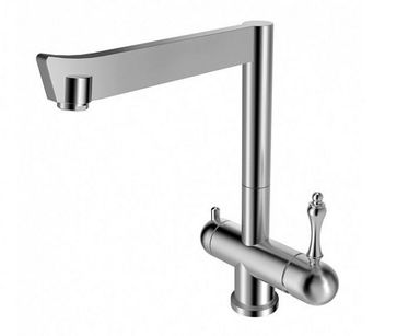 Смеситель из нержавеющей стали, с подключением фильтра Установка на мойку/столешницу Комплектация: гибкая подводка, прокладки, система крепежа None