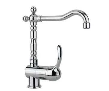 Управление:однорычажный Механизм:керамический картридж Стилистика дизайна:ретро Материал:латунь Покрытие (Цвет):хром Выдвижной излив:нет Монтаж:на мойку Отверстия для монтажа: на 1 отверстие Вращение излива:поворотный В комплекте:аэратор / гибкая подводка Стандарт подводки:3/8 Длина излива (см):19" None