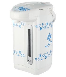 Характеристики: Тип: термопот Объем: 4,5 л Мощность: 750 Вт Материал корпуса: пластик Насос: ручной/автоматический Тип нагревательного элемента: закрытая спираль