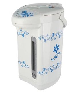 Характеристики: Тип: термопот Объем: 5 л Мощность: 750 Вт Материал корпуса: пластик Насос: ручной/автоматический Тип нагревательного элемента: закрытая спираль