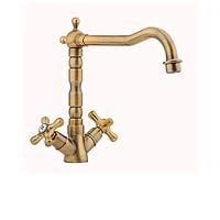 Двухвентильный смеситель с низким поворотным изливом c покрытием под бронзу. Винтажный дизайн. Наличные, б/н расчет, банковские карты