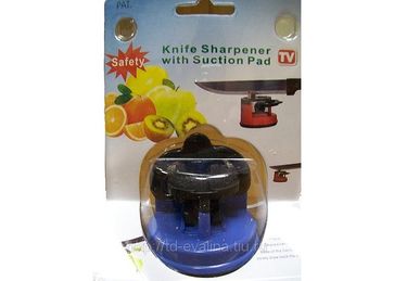 С вакуумным креплением к столу. Заточить можно не только обычное лезвие ножа, но и ножи с серрейторной заточкой (крупный зубчик — тип хлебного ножа), а также ножницам можно вернуть былую остроту.