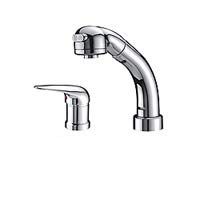 Смеситель для кухни на два отверстия. Выдвижной излив. Керамический картридж, материал латунь, цвет хром Наличные, б/н расчет, банковские карты
