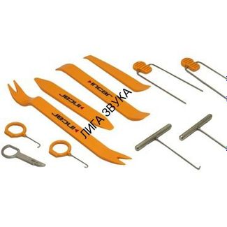 С помощью набора инструментов Intro TK-1 Вы сможете быстро и легко демонтировать детали интерьера автомобиля (элементы приборной панели, дверных карт, магнитолу). В комплект включены специальные ключи для демонтажа штатной магнитолы. При использовании данного набора риск повреждения элементов интерьера сводится к минимуму.Как снять магнитолу? Уже 9 лет подряд набор инструментов для монтажа/демонтажа магнитол Incar TK-1 является хорошим подспорьем всем, кто занимается этим делом. Обычны, если вы покупаете музыку в магазине, в комплекте с аппаратом идут специальные ключи-съемники, с помощью которых вы можете, при желании, извлечь ресивер из шахты (не повредив панель!!!). В случае же, когда речь идет о фабричном радио, установленном в салоне или на заводе, подобные действия производителем автомобиля не предусматриваются, поэтому извлечь старый приемник иногда проблематичнее, чем установить новый.Специальный набор Incar TK-1 включает в себя наиболее полный комплект ключей для снятия штатных автомагнитол. Используя их, вы решаете вопрос как снять магнитолу, фальшпанели, обшивку не повредив поверхности, не испортив внешнего вида интерьера салона автомобиля.Использование ключей, как правило не требует специальных навыков, вы просто вставляете их в специальные отверстия в лицевой панели магнитолы, погружаете их до щелчка и вытаскиваете назад вместе с аппаратом. Прежде чем использовать их, необходимо установить к какому типу относится головное устройство в вашем автомобиле, надо сказать, что внешне магнитолы, как правило, отличаются друг от друга, но типовые вещи (разъемы подключения, антенные разъемы, салазки для установки радио), как правило, однотипны. Круглые штыревые ключи могут вам пригодиться при демонтаже штатного головного устройства в большинстве автомобилей Peugeot, Renault, Vauxhall, старые модели Ford, некоторые Citreon, Fiat и некоторые другие производители автомобилей. Этот тип, как правило, используется в качестве единого механизма стандарта DIN ISO, то есть