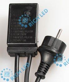 Блок питания для светодиодных гирлянд Rich LED, цвет черный. 1,5 м, с контроллером (8 режимов, память). Соединеняется до 5 шт. None
