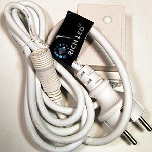 Блок питания для светодиодных гирлянд Rich LED, цвет белый. 1,5 м, с контроллером (8 режимов, память). Можно подключить до 5-и сеток. None