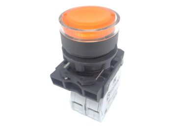 Выключатель кнопочный цилиндрический с подсветкой, жёлтый Аналоги: XB5AW35B5, ABLFS-22 d22 мм неон/230 В 1з+1р желтый