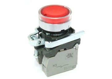 Выключатель кнопочный цилиндрический стальной с подсветкой, красный Аналоги: XB4BW34M5, XB4BW34B5, LAY5-BW3461