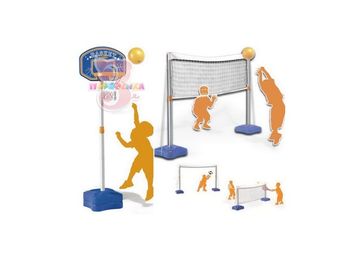 При помощи этого набора вы можете разнообразить досуг вашего ребенка и поиграть с ним в баскетбол, волейбол, футбол, теннис, бадминтон. В комплекте: