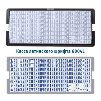 Касса латинских букв и цифр - 6004L 6004L - Касса латинского шрифта высотой 4 мм с системой крепления символов «две ножки». Используется с самонаборными штампами и датерами. Все элементы легко вставляются в рифленую информационную плату оснастки. Язык: латиницаКоличество символов: 228Высота шрифта: 4 ммСистема крепления: 2 ножки Касса наборного латинского шрифта 6004L содержит буквы латинского алфавита, цифры и знаки препинания. Помимо основных букв алфавита, касса содержит буквы с диакритическими знаками, что очень удобно при наборе штампов на иностранных языках. Также, в кассе есть значки-иконки для выделения номера телефона.Знаки кассы крепятся на рифлёную плату самонаборного штампа или датера с помощью двух ножек. Такой способ крепления отличается особой надёжностью закрепления букв в штампе. Для набора используйте специальный пластиковый пинцет. Касса совместима с любыми самонаборными штампами и датерами с «двуножечной» системой крепления (GRM и TRODAT). Внимание! Набор информации на текстовую плату самонаборного штампа или датера осуществляется справа налево в зеркальном отражении.После полного изменения текста, рекомендуется заменить штемпельную подушку в штампе.Пинцет не входит в комплект, его необходимо докупать отдельно. Наличные, Visa/Mastercard, б/н расчет, Сбербанк. Можно купить без предварительного заказа. Возможен самовывоз. Есть доставка.