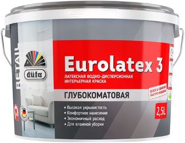 - Dufa Retail Eurolatex 3 2.5 л белая по выгодной цене 859 р. руб.;