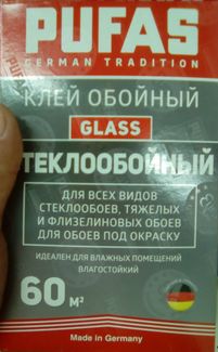 - Клей для стеклообоев и флизелиновых обоев Pufas Glass (0.5 кг) по выгодной цене 389 р. руб.;