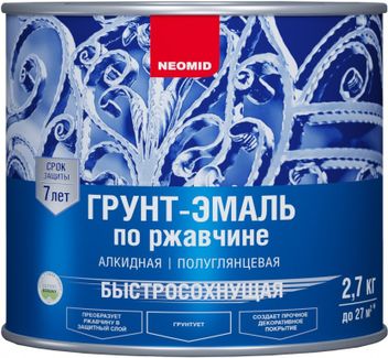Назначение: Для защиты и окраски очищенного и не требующего специальной очистки металла, в том числе оцинкованного, с плотно сцепленной коррозией толщиной до 100 мкм.Типы поверхностей: Металлические, оцинкованные.Свойства:Создает защитно-декоративное покрытие различных цветов.Изменяет химический состав ржавчины, преобразует ее в защитный слой, который максимально изолирует металлическую поверхность от попадания влаги.Покрытие может эксплуатироваться в условиях периодического перепада температур от -60°C до +60°C.Сайт производителя: neomid.ru Наличные, банковская карта, безналичный расчет Возможен самовывоз. Есть доставка.
