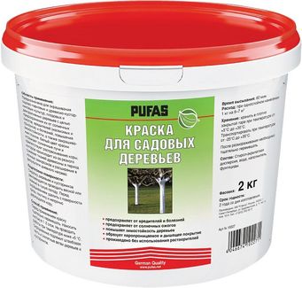 Назначение: Предназначена для окрашивания садово-парковых и древесно-кустарниковых культур, плодовых и декоративных деревьев с целью предохранения их от солнечных ожогов и вредителей (насекомых и грызунов), болезней, повышения зимостойкости, также закрашивания спилов.Свойства:Предохраняет от вредителей и болезней.Предохраняет от солнечных ожогов и препятствует растрескиванию коры, которое происходит и-за резкого сужения тканей древесины в период ночных заморозков и дневного нагрева.Повышает зимостойкость деревьев.Образует паропроницаемое и дышащее покрытие.Произведено без использования растворителей. Наличные, банковская карта, безналичный расчет Страна производства: Россия Возможен самовывоз. Есть доставка.