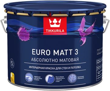 - Тиккурила Euro Matt 3 Абсолютно Матовая 9 л бесцветная по выгодной цене 5 520 р. руб.;