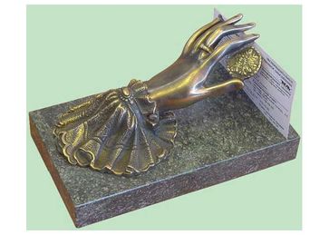 Этот кабинетный прибор потерял некоторую актуальность, но он может стать украшением стола деловой женщины. Изящная женская рука с запястьем в тонких кружевах, тонкие пальцы аристократки. Не зря женские руки сравнивают с крыльями птицы.Пресс-зажим "Рука", сувениры, подарки сувениры, магазин сувениров, бизнес сувенир, русские сувениры, сувениры оптом, сувениры москва,к None