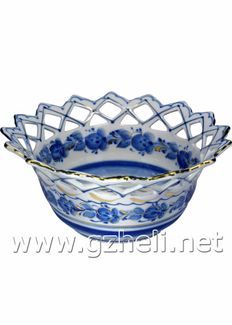 Конфетница "Камелия" в золоте. Гжельский фарфор. арт. 0331