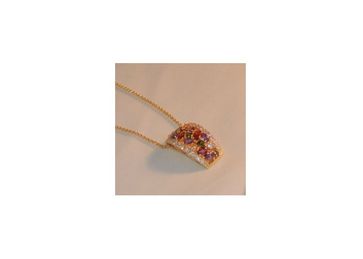 Красота украшений коллекции Фестиваль бесконечна и многогранна, таинственность завораживает и околдовывает, а загадочность притягивает. Поверхность кулона Фестиваль украшена цветными камнями фианитами, благодаря чистоте и восхитительной огранке, он может посоперничать своим блеском с настоящими бриллиантами. Кулон имеет цепочку, покрытую 18К золотом. Длина кулона 25 мм, ширина 15 мм. Благодаря эксклюзивному дизайну, кулон не переворачивается и всегда предстанет окружающим своей лицевой None Можно купить без предварительного заказа. Возможен самовывоз. Есть доставка.