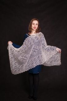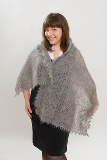 Палантин/накидка - ажурное изделие прямоугольной формы. Ценность изделия в его тонкости и теплоотдаче - проходит через обручальное кольцо и не смотря на толщину хорошо согревает! Состав: козий пух и шелковая нить. Большой ассортимент представлен на нашем сайте! Реализация оптом и в розницу.