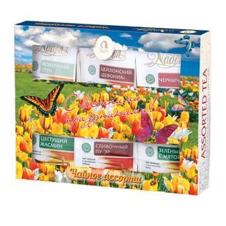 - Подарочный набор пакетированного чая Ассорти 6 видов по выгодной цене 270 р. руб.;