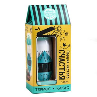 - Подарочный набор "Порция чистого счастья" (термос 350 мл., какао 100 гр.) по выгодной цене 930 р. руб.;
