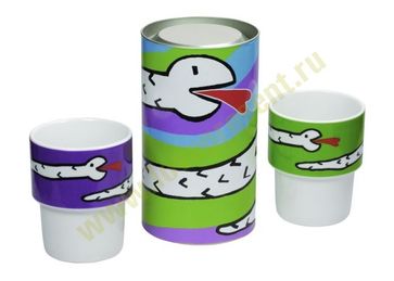 Набор из двух дизайнерских кружек в подарочном тубусе станет отличным подарком друзьям, близким или коллегам по работе. Кружки выполнены из керамики белого цвета и декорированы авторским принтом с изображением веселой змейки. Подарок не только приятный, но и практичный.