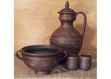 Подарок ручной оригинальной работы предлагаем купить для подруги, друга, семьи, коллеги. Кувшины, вазы, посуда, амфоры стилизованные под старину, изготовленные по старинной технологии украсят интерьеры от кантри до лофта. На нашем сайте представлены уже готовые комплекты из разных предметов и вы сами можете собрать нужный вам набор керамики. Посуду в русском стиле хорошо дарить иностранным партнерам и коллегам - ведь матрешками уже никого не удивишь. Красивый комплект из кувшинов можно подарить руководителю. Для подруги, мамы, коллеги подойдет ваза настольная Бабочки - в нее входит 51 роза.Доставка по Москве и Подмосковью в день и час нужные вам.