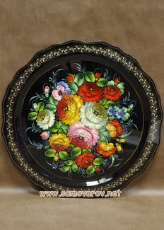- Поднос Жостово круглый большой. Художественная роспись "Цветы на черном". арт. 3218 по выгодной цене 3 300 р. руб.;