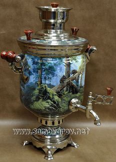 - Самовар никелированный жаровой (угольный) с росписью "Утро в сосновом бору" 5 л. банка. арт. 1563 по выгодной цене 22 900 р. руб.;