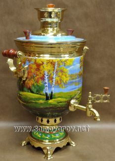 - Самовар полированный жаровой (угольный) с росписью "Осень" 7 л. банка. арт. 3145 по выгодной цене 21 500 р. руб.;