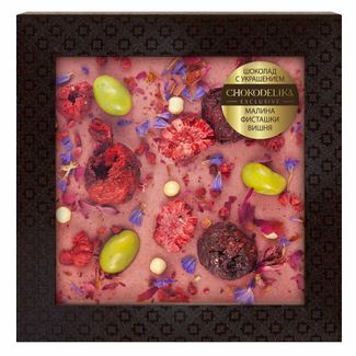 - Узорный шоколад в блистере Chokodelika "Малина, фисташка и вишня", 75 гр. по выгодной цене 360 р. руб.;